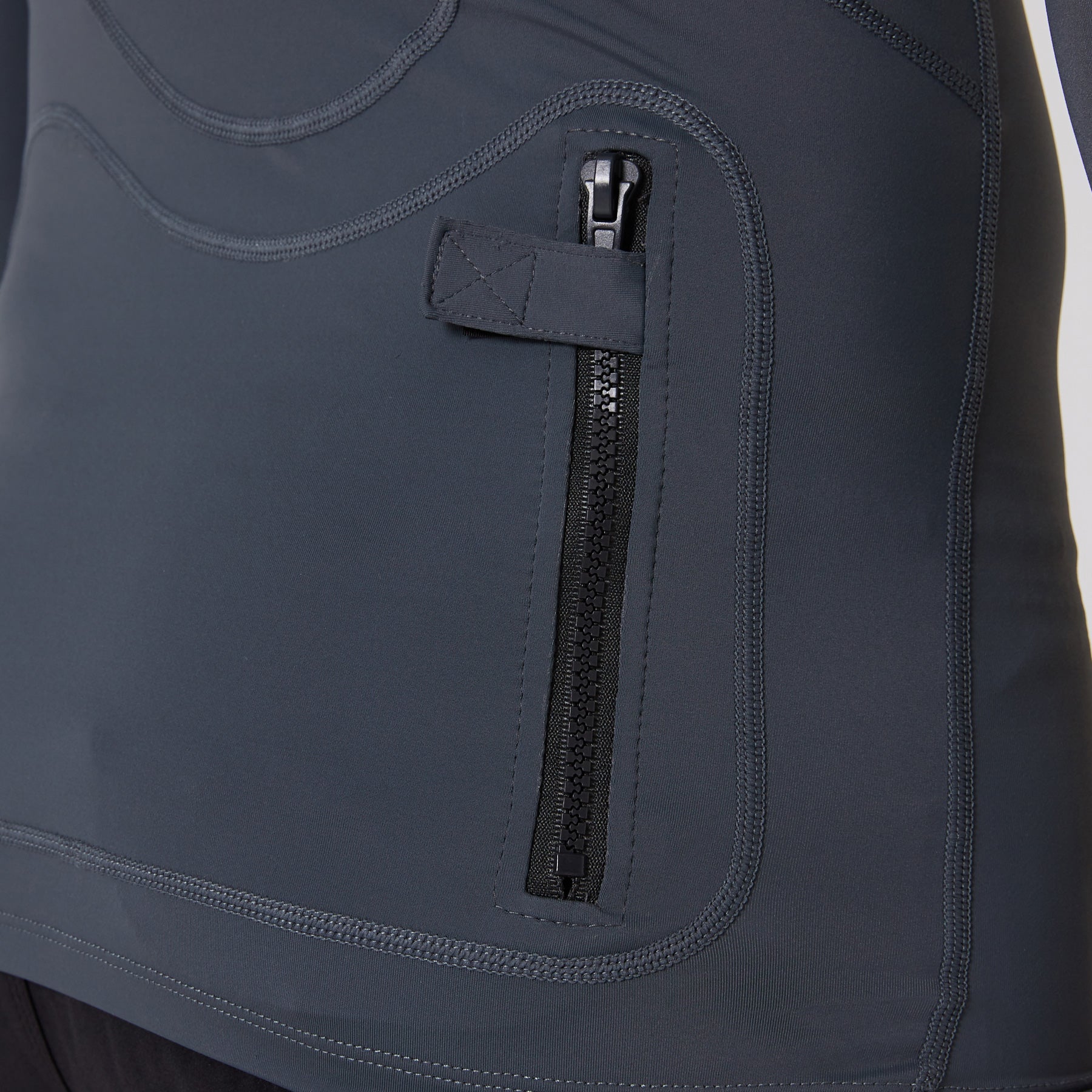 Stash pocket gusset at back with zip closure